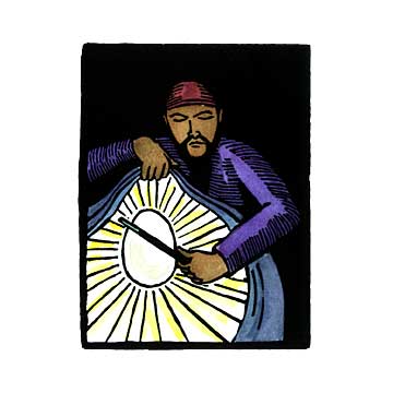 The Magician is an important figure in a standard Tarot deck; here he conjures up the First Egg