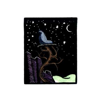 This little linoleum blockprint looks like an illustration from “1001 Arabian Nights”, but is just another illustration from the mind of Marvin Hill