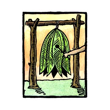 The 7 of leaves in the Oracle Deck. I love the idea of a bell of leaves… think of the sound it would make when struck with a hammer 🙂