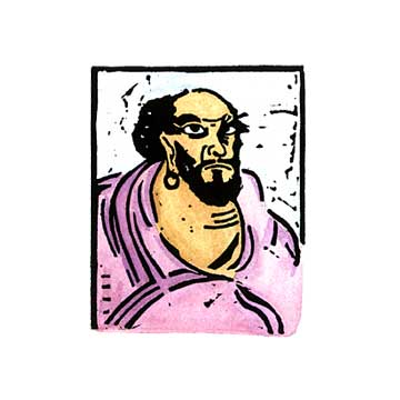 Early woodcut. The legend has it that Bodhidarma became so angry with himself for falling asleep during meditation that he removed his own eyelids. Dedication? Madness? Both??
