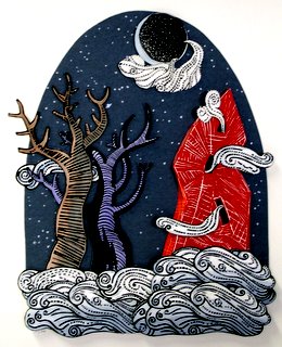 The idea started with a tiny little linocut called “Cloud House”, and grew from there.