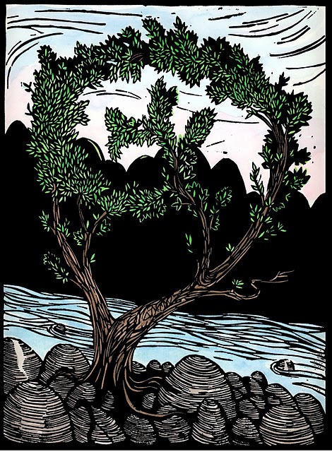 There was a tree right off of the highway heading south into Milwaukee — it was right near the road, not in this idyllic setting, but the branches made a beautiful spiral. The last time I traveled that road, it was still there.