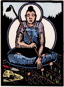 Gardening is a form of meditation, no doubt about it. I love the idea of the Buddha in overalls and a t-shirt.