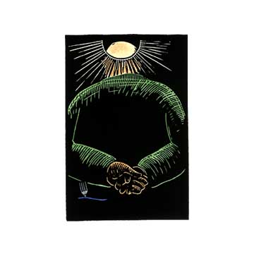 John Kruth and Marvin joined forces and conceived a book combining John’s wonderful sharp poems and Marvin’s linocut illustrations. It was published by Barefoot Press out of Raleigh NC, and won a national “PICA” small press award in 1992. Marvin carved every word in the book as well as all the illustrations.