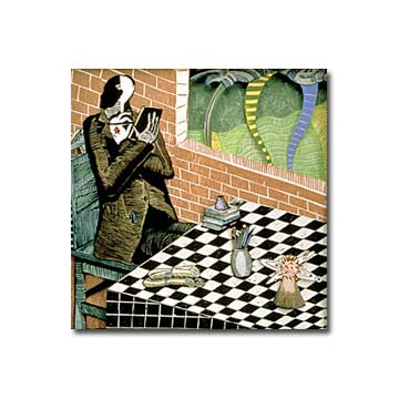 One of the “Comets and Ghosts” series from Marvin’s graduate thesis exhibit. The first one was very deep, and assembled in a painted wooden box. Like the others, The Scribe evolved into the piece above which had more of the illusion of depth than actual depth. He was reading about the practice of “automatic writing”, and since we were living in Iowa there had to be tornadoes.