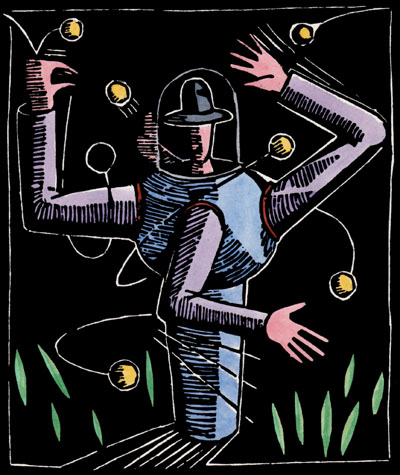 Another image hacked into an old piece of floor linoleum – a Very Marvin image