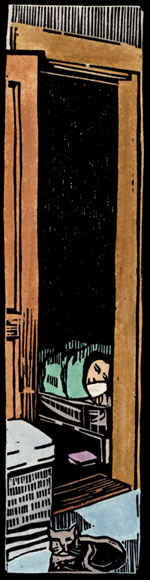 Early woodcut… our little apartment in Bloomington IN. That’s Earl in the foreground.