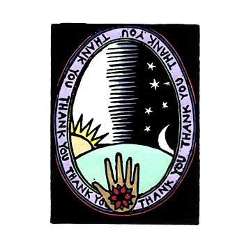 Even though many more Tarot images made their way from Marvin’s mind to blocks of linoleum and eventually to paper and my watercolor brushes, he knew “Thank You” was the last card in the deck. Above all, he was grateful for his time on earth. Marvin always said he was “the luckiest man in Bedford Falls”. I think it’s what made his artwork so personal and so powerful — he never lost track of the magic.